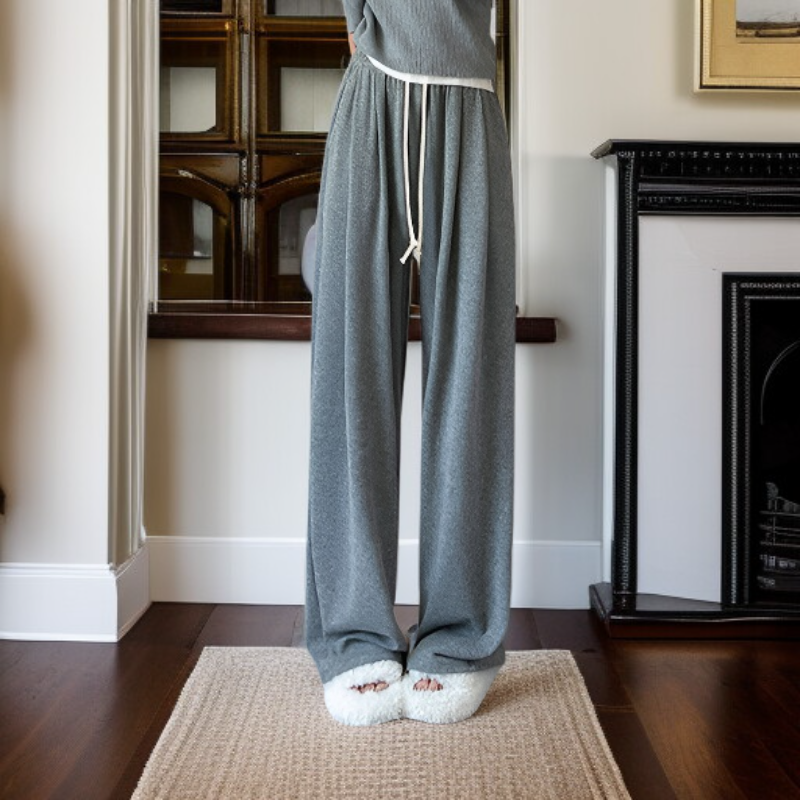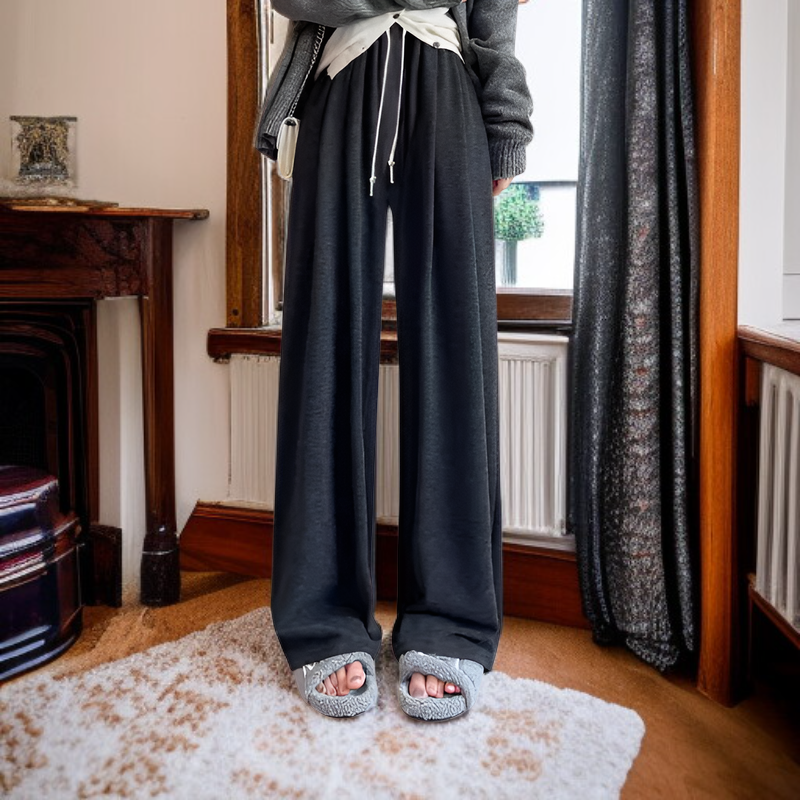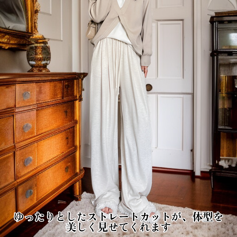 裏起毛もちもちニットワイドパンツ レディース 春秋冬 ゆったりストレートカジュアルパンツ