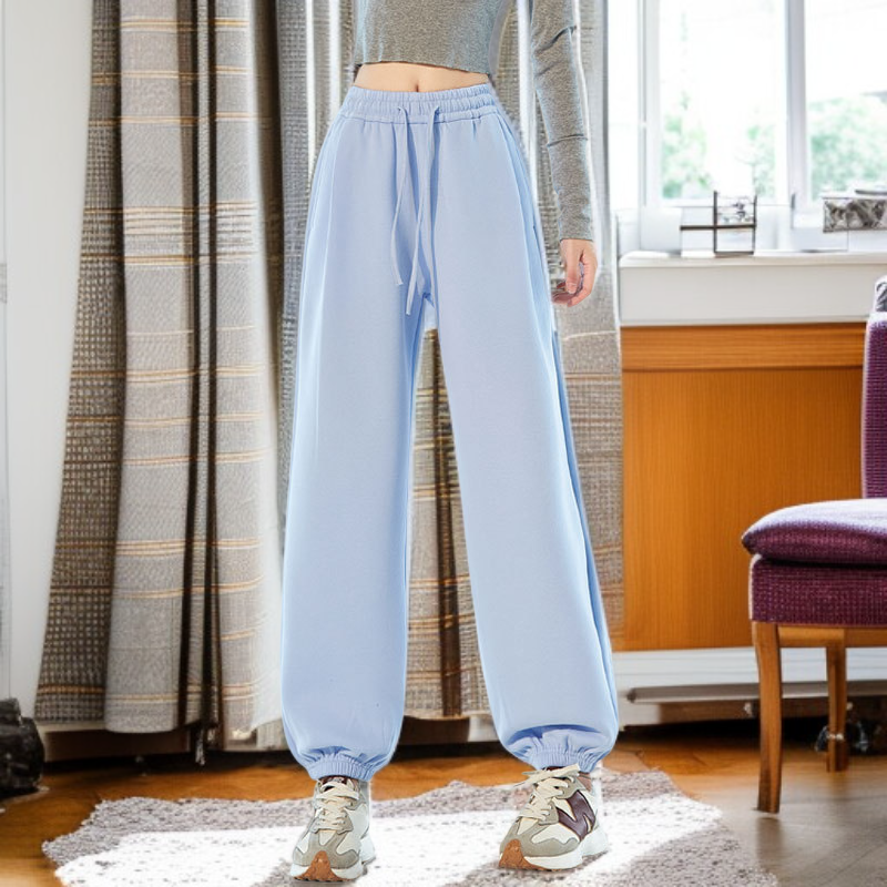 レディースアメリカンスポーツパンツ 春秋新作 ゆったりジョガーパンツ 大きいサイズ カジュアルスウェットパンツ ホワイトグレー